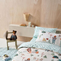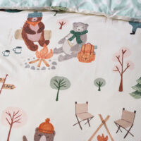 Pack your bags! It’s camp time with a group of cuddly bears who’ll make perfect camp buddies, whether to toast marshmallows, go for a hike, or set-up a tent! This super-cute, 225 thread, cotton percale ensemble enjoys beautifully hand-illustrated details in hues of chocolate, pumpkin and forest – lovingly created in our Melbourne studio. Complete with a wave-print reverse and cord-piped trims.