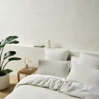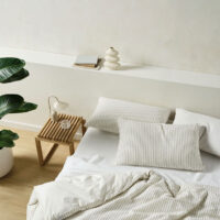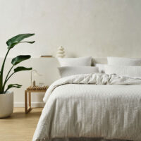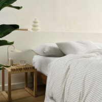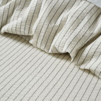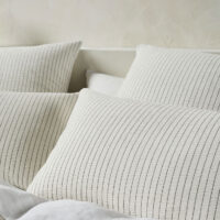 A fine, yarn-dyed stripe in a seersucker weave, Chiltern’s lovely cotton texture comes in a neutral cream and black palette. This set is finished with cord piping trims in matching fabric, reverses to a plain-dyed cotton, and looks even more inviting paired with coordinating cushions and throws.