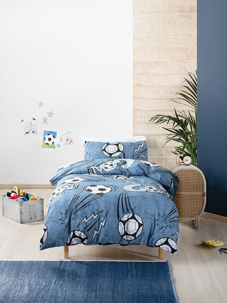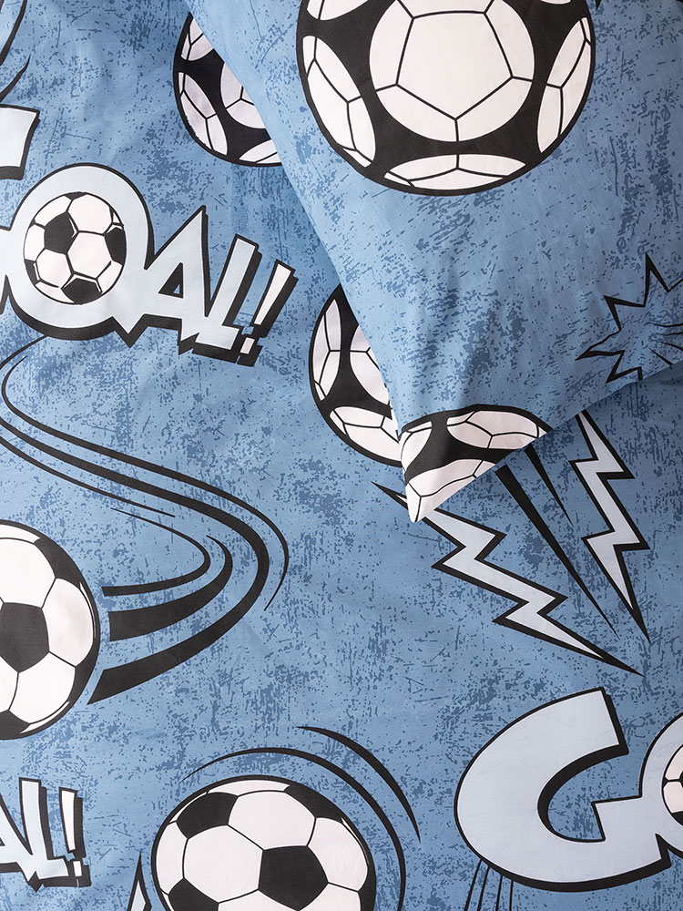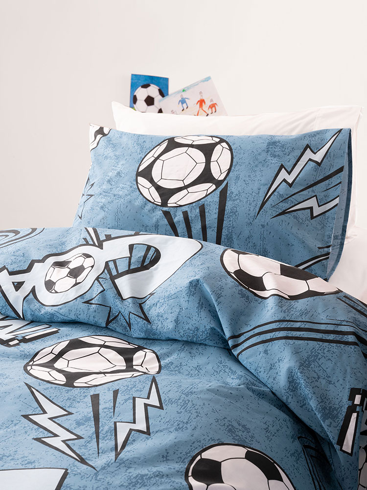 The perfect soccer-inspired design for your little athlete’s bedroom, this awesome duvet cover features a goal-scoring soccer ball on a stylish blue base. With the same print on the front and reverse, this is the perfect design for adding sporty fun to your space.