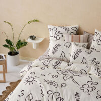 A new approach from our Linen House design studio, Kenzi is a bold, graphic expression of Matisse-inspired handwriting. With its dynamic charcoal floral design printed on a cream-hued, textured cotton slub ground for impact.