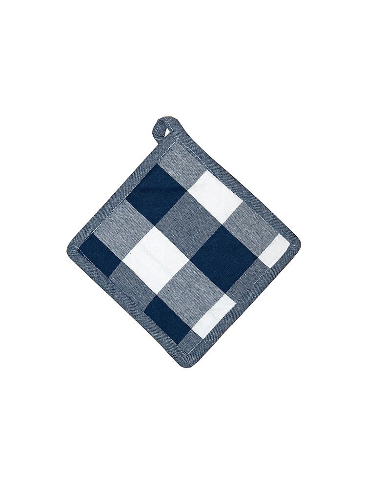 Destined to be a year-round dining favourite, Revana’s navy check is made from a beautifully soft cotton. Perfect for any kitchen theme, this pot holder features a hanging loop and trims, and looks superb styled with more pieces from the multi-coloured Revana collection.